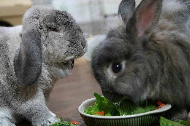 権ちゃんと安寿ちゃんはサラダもドレッシング無しで