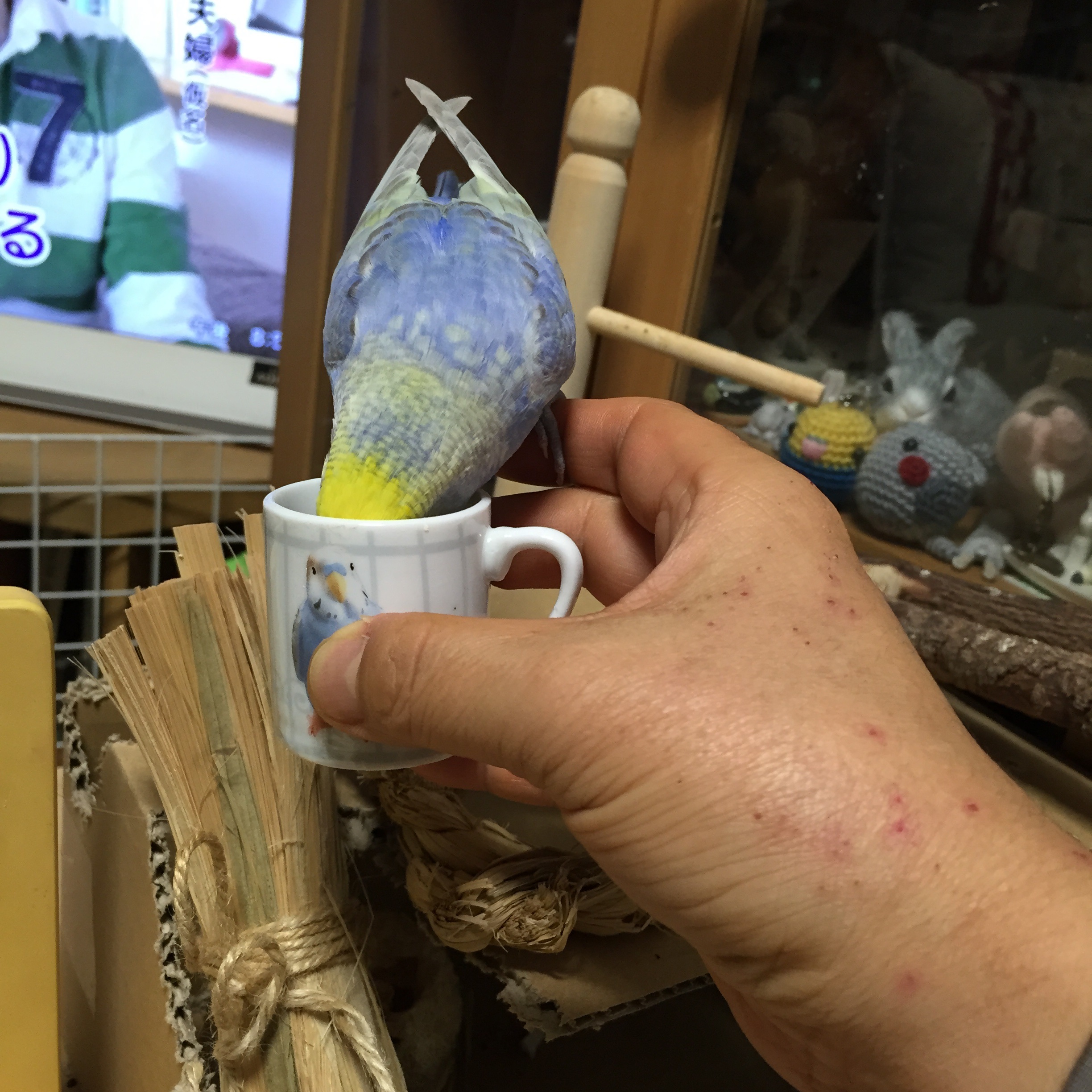 もっちぃ:セキセイインコだぴ。2011年の10月15日にお家に来たぴ。