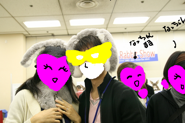 ウサミミ仮面な、おぼ父さん、ホンマ似合うやろ!?