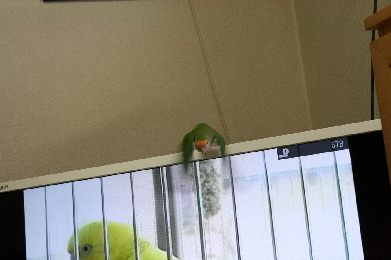 みんな、自分と同じ種類のインコちゃん見ると喜ぶでちゅ!!