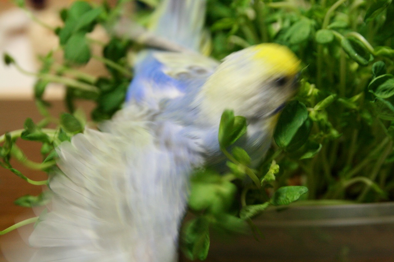 豆苗ダイブすると、おかしいくらいアゲアゲになるのでちゅよ。
