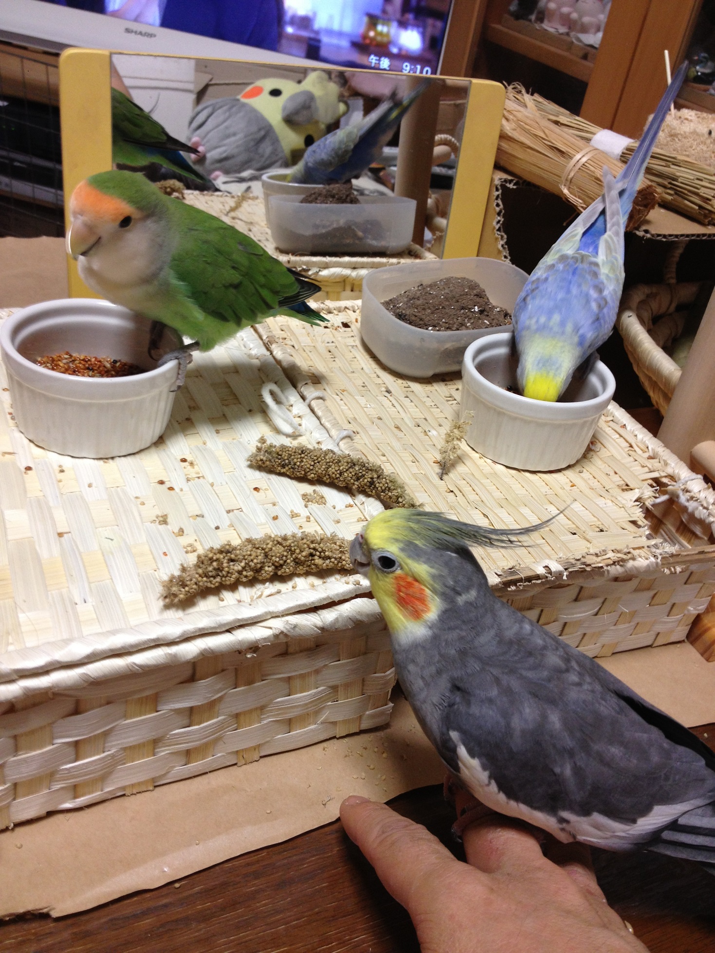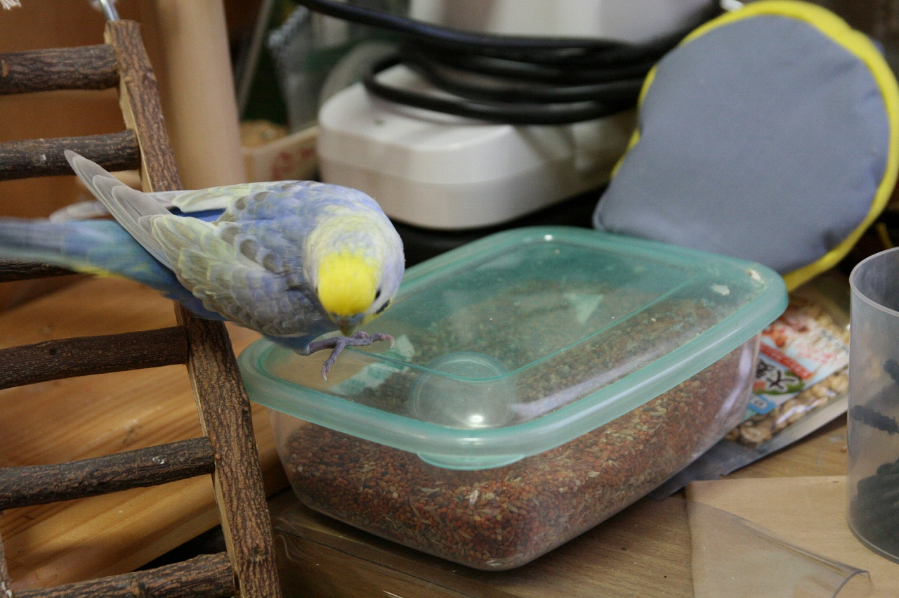 もっちぃ:セキセイインコだぴ。2011年の10月15日にお家に来たぴ。