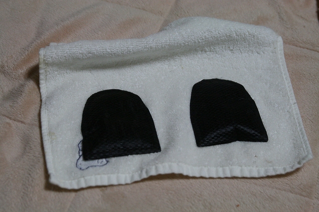ハンドタオルにこうやって靴下用カイロ貼って