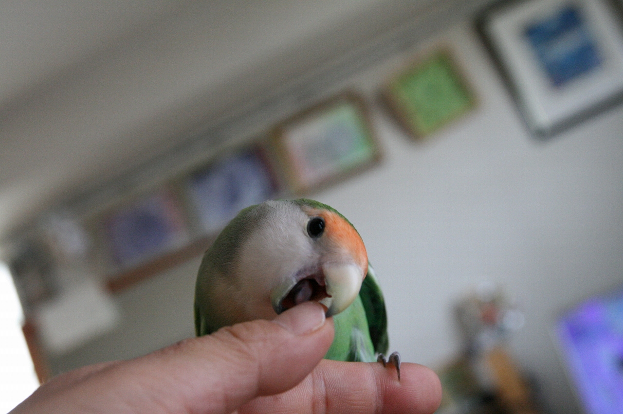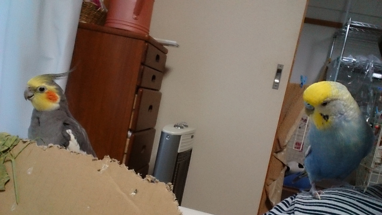 おかん: コザクラインコさんは、濡れたら凶悪な匂いするからなあ・・・。