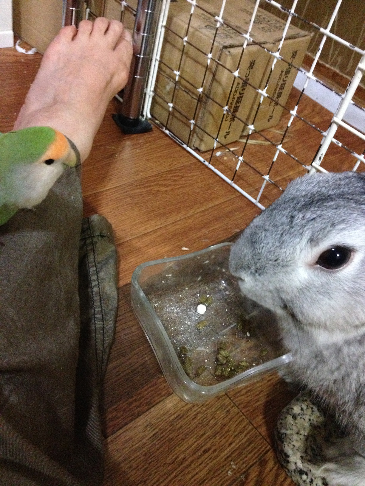もっちぃ: 玄之丞ちゃん、ウサギさんとインコは