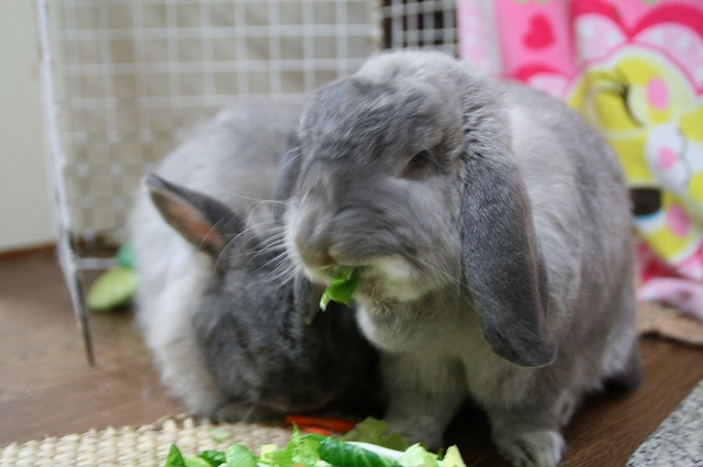 牧草はあきらめて、サラダ食べり。