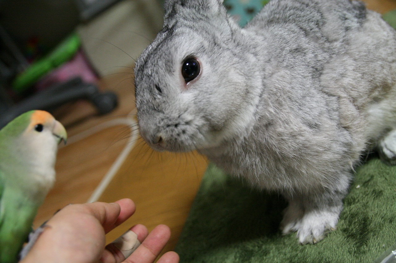インコのもっちぃ、オカメインコのぎんちゃん、コザクラのさくら、ウサギの玄之丞と手毬のお笑い生活です。日本一のおっさん兎、権造とお姫様兎の安寿がお月様から見守ってますよ~!