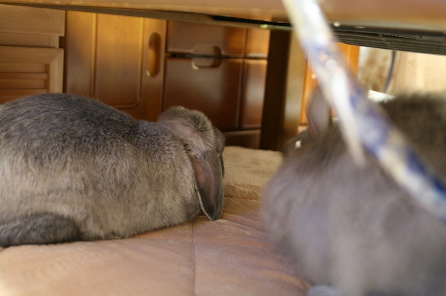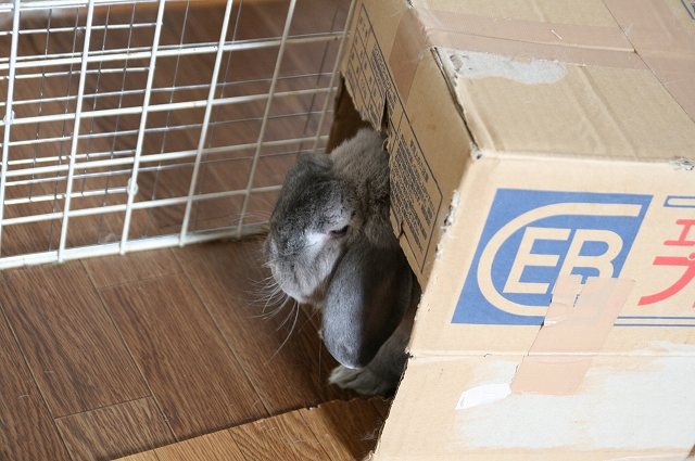 安寿はサークルと牧草ストック箱の隙間が