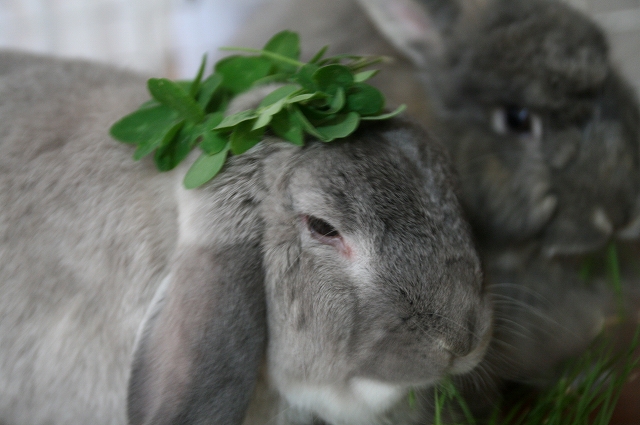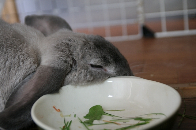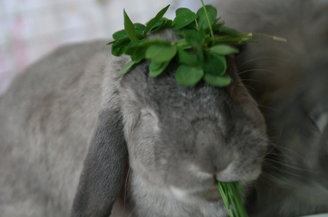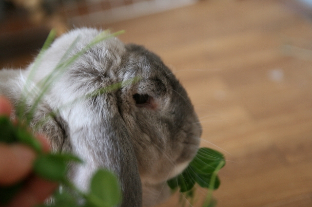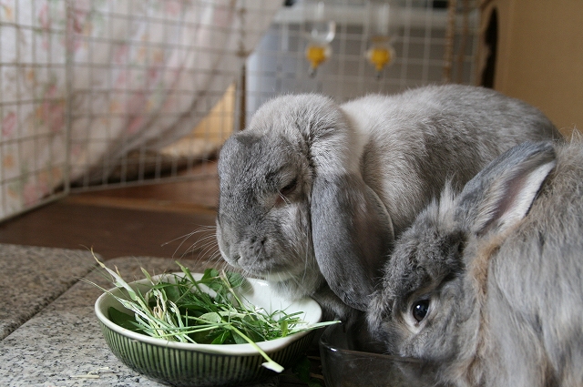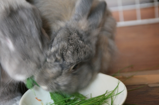 せや。お皿にな、生牧草とかクローバー入れててくれたら