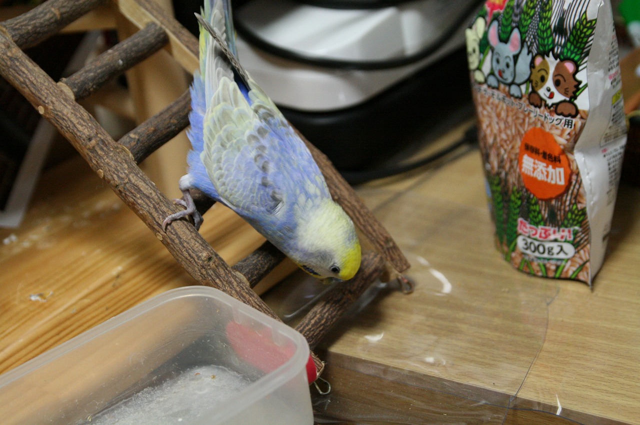 もっちぃ:セキセイインコだぴ。2011年の10月15日にお家に来たぴ。