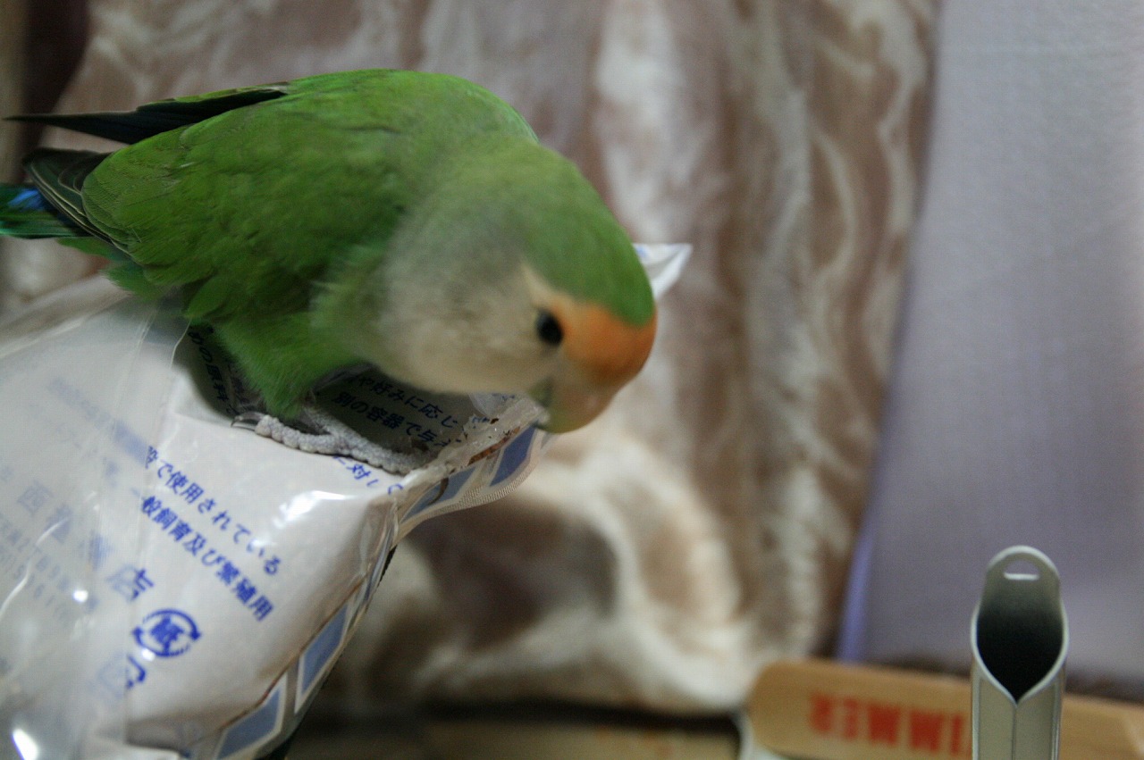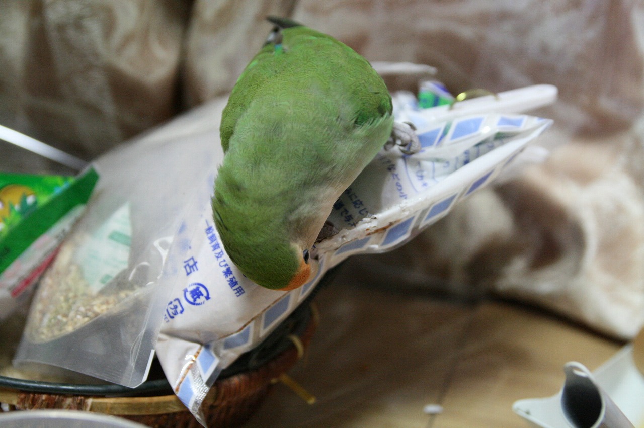 さくら: 放鳥中のおやつの赤粟の袋、