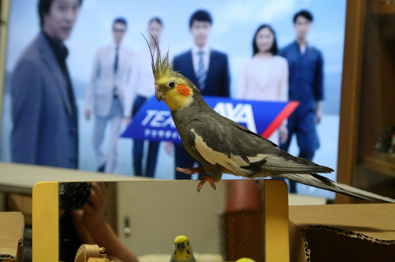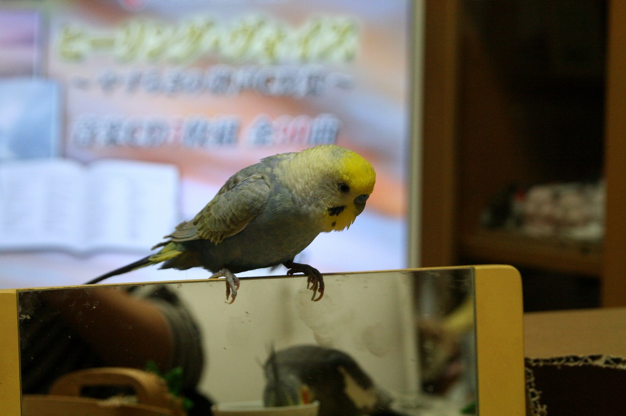 鏡の上に避難しちゃったぴ。