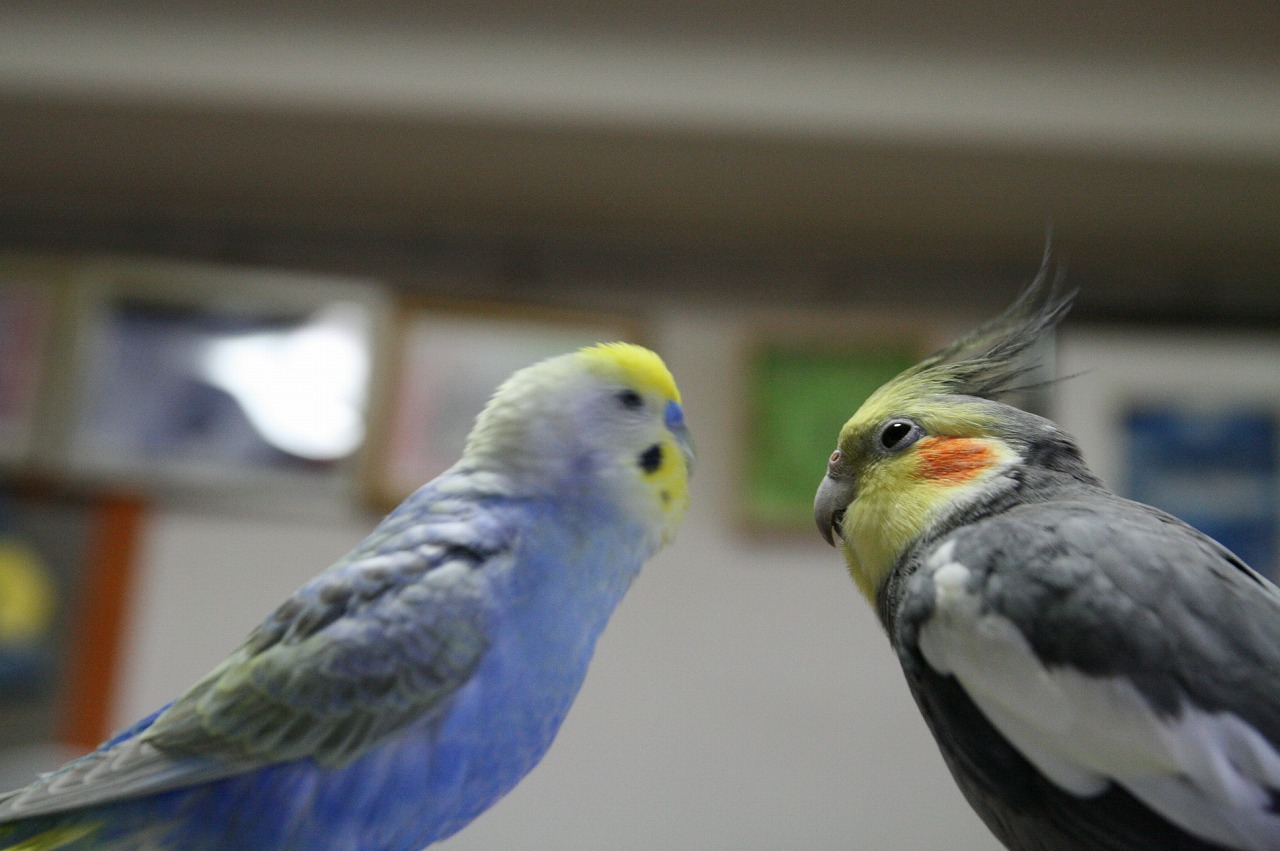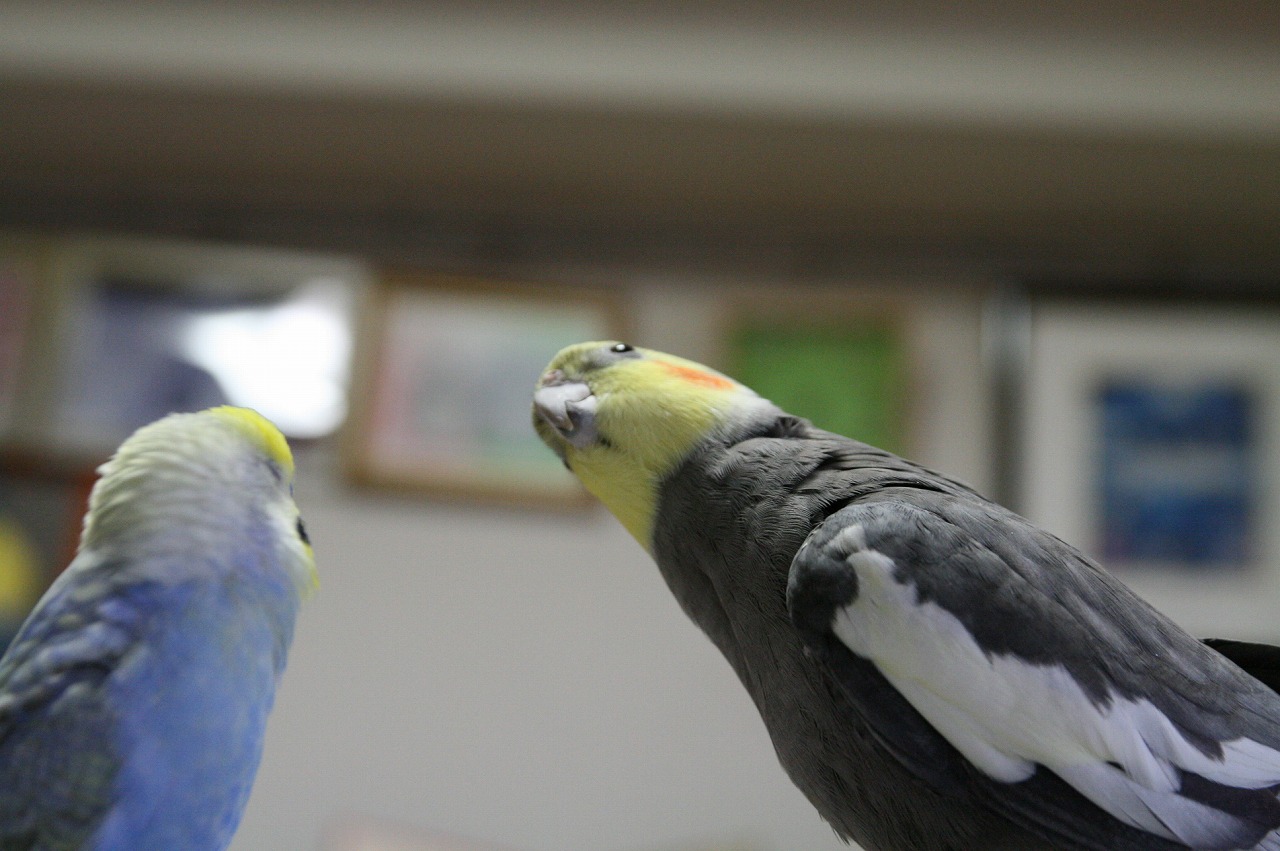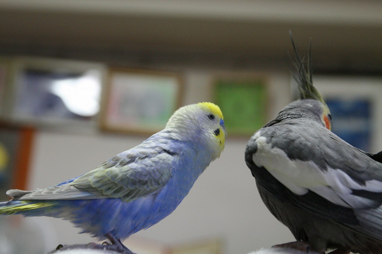 セキセイさんとオカメさんだから、好きなコトが違うのでちゅ。