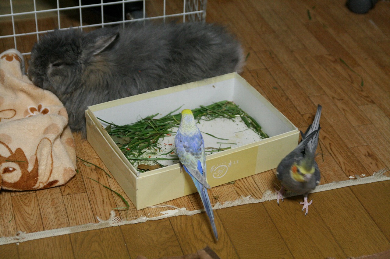インコのもっちぃ、オカメインコのぎんちゃん、コザクラのさくら、ウサギの玄之丞と手毬のお笑い生活です。日本一のおっさん兎、権造とお姫様兎の安寿がお月様から見守ってますよ~!