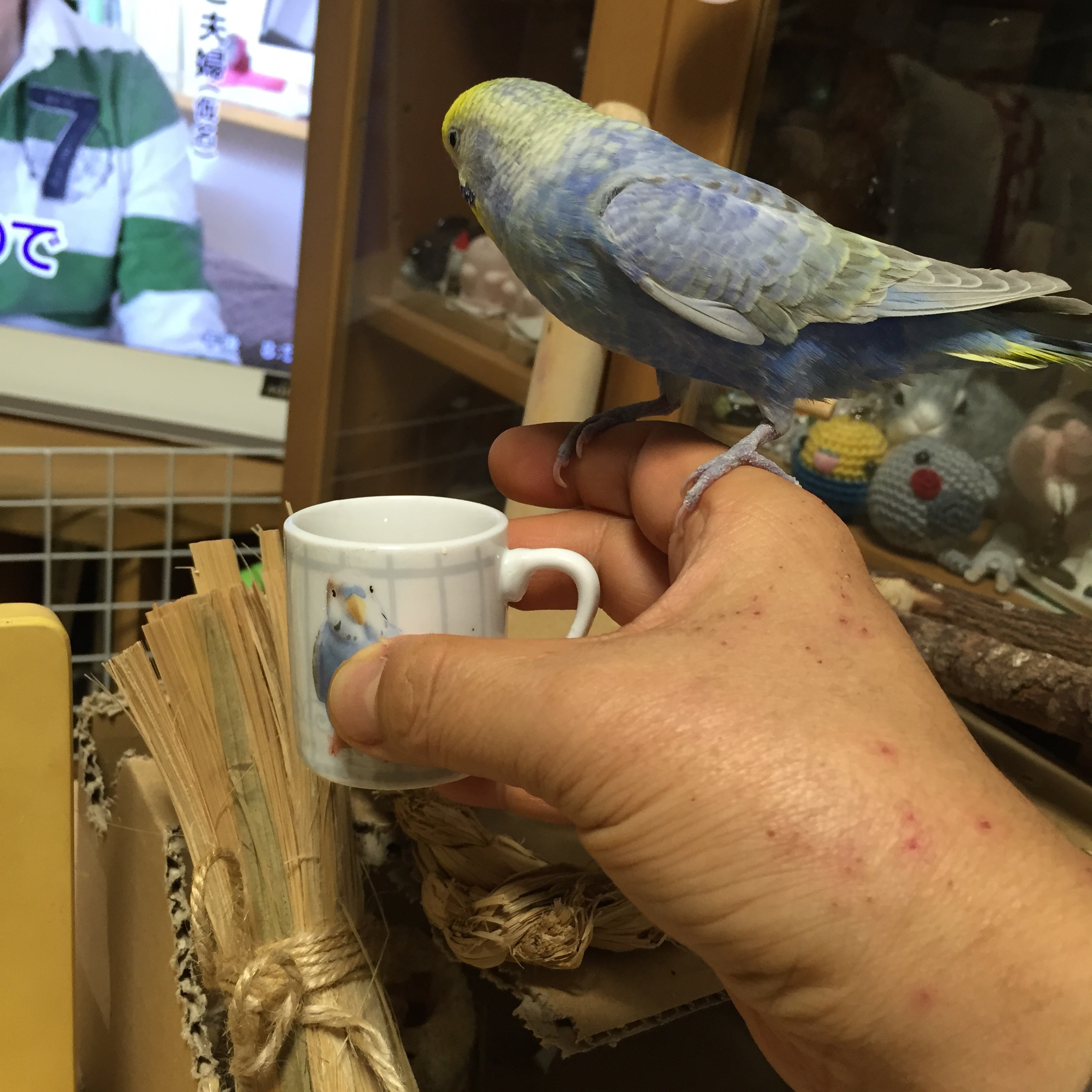 もっちぃ:セキセイインコだぴ。2011年の10月15日にお家に来たぴ。