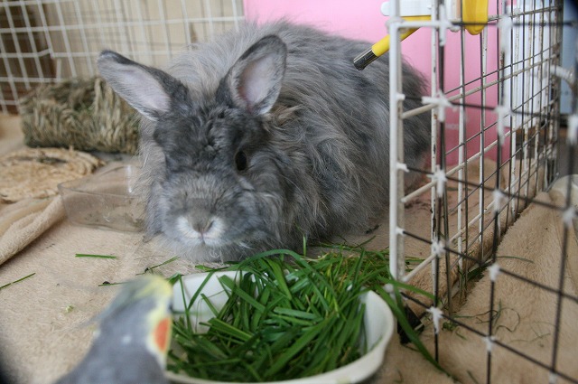 生牧草を食べるぴょ~。