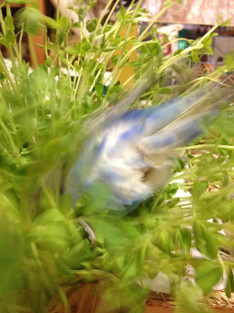 もっちぃ: 豆苗にダイブだぴ~~!!!