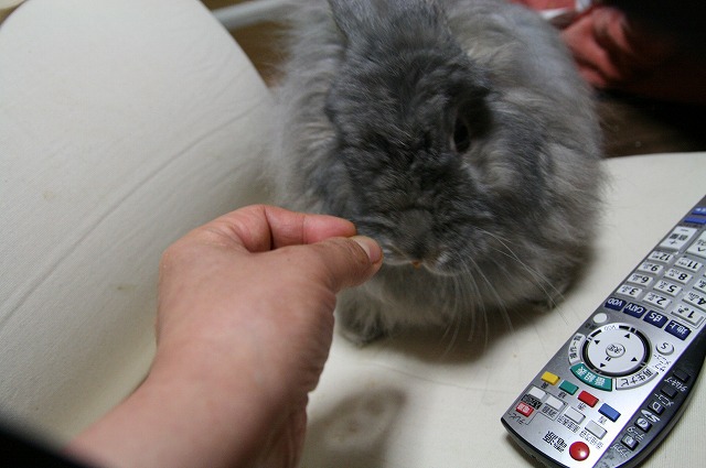 ぎんちゃん: まずは、おねえたんに牧草もらうぴょ。