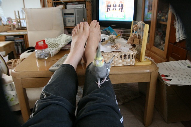 こうやって、テーブルに足乗せとかなアカンねん~・・・。