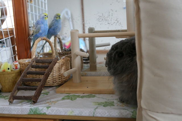 ひどい環境で鳥さんやウサギさんを扱ってた元ペットショップから保護しはったんやって。