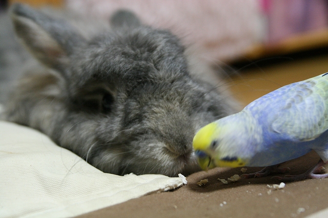 インコのもっちぃ、オカメインコのぎんちゃん、コザクラのさくら、ウサギの玄之丞と手毬のお笑い生活です。日本一のおっさん兎、権造とお姫様兎の安寿がお月様から見守ってますよ~!