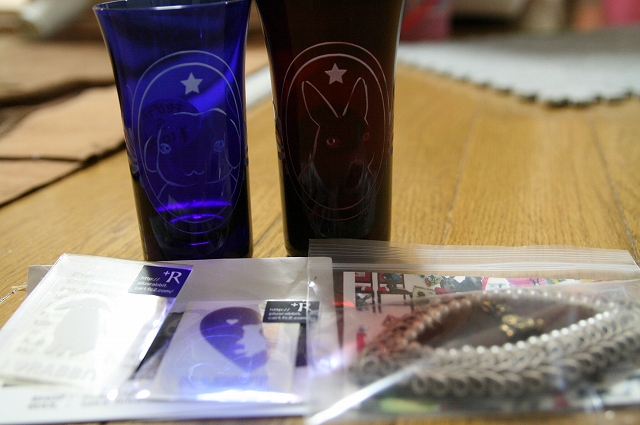 青と赤のグラス、可愛いやろ~!!